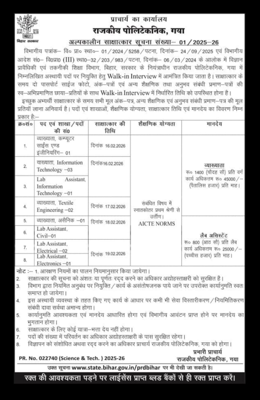 Gaya presently offers a diploma courses in five streams of engineering, civil engg, Computer science and engineering, Electrical Engg. Electronics Engg. and Mechanical Engg. And also some vocational courses for employment generation such as IRG, CDTP and women industrial school.